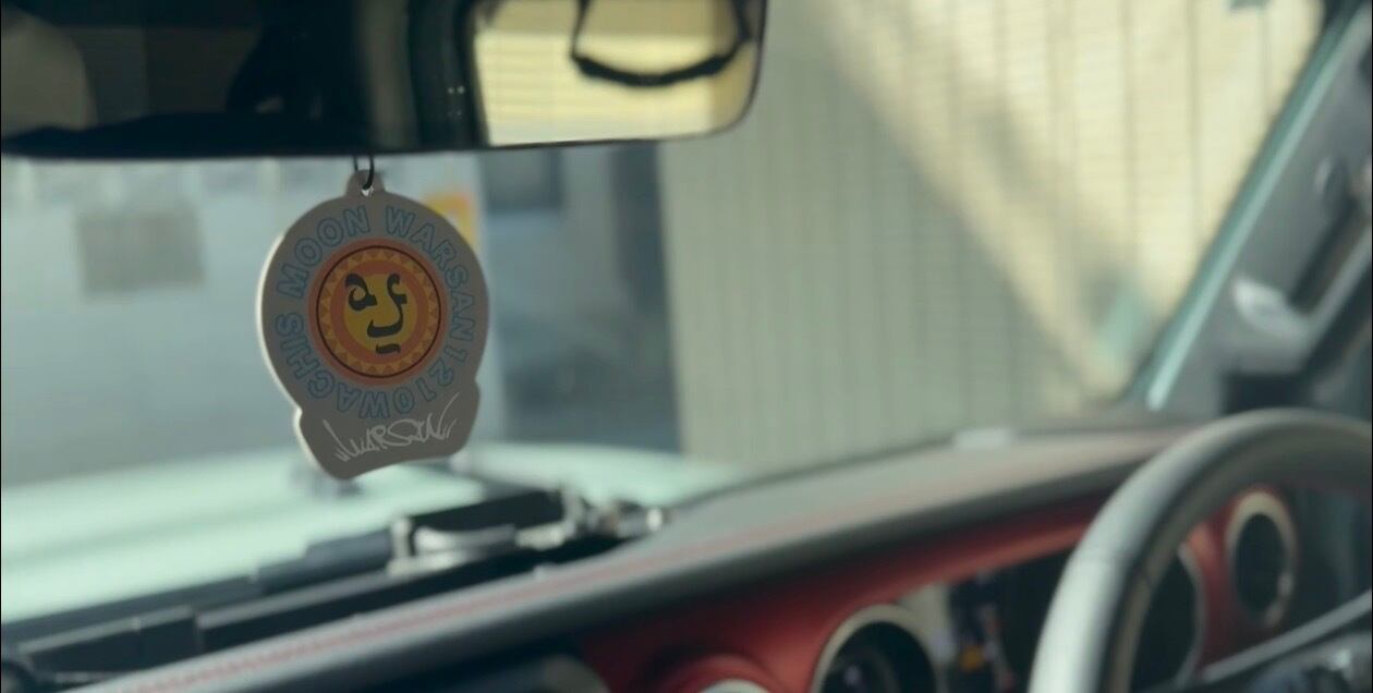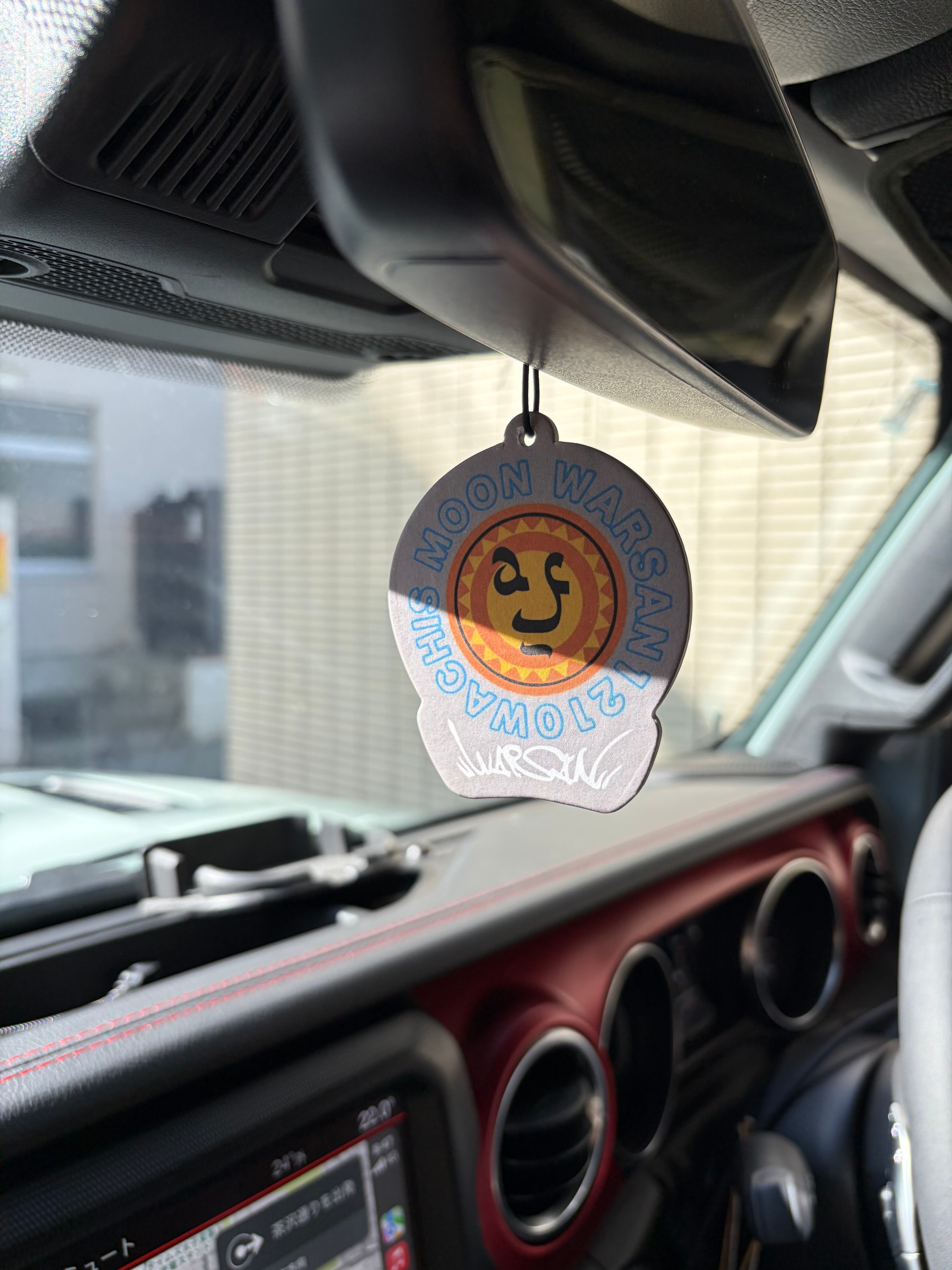 WARSANのブランドの『WACHIS MOON』のマークとロゴのキーホルダーとカーフレグランス(紙製芳香剤)です。